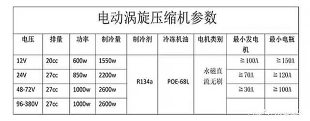 小排量車型,車內空間小、壓縮機功率自然也不需要太大,可以參照12-24V的電動壓縮機功率,壓縮機功率在1000~1500w左右。大排量車型,車內空間大、舒適性要求較高,壓縮機排量更大一些,功率也在2-3kw之間,制冷功率超過5kw。